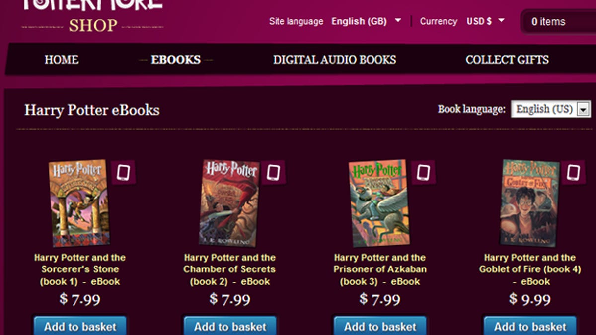 Still officially in beta mode until early April, the Pottermore Web site runs an online shop where customers can also buy audiobooks of the Potter series -- $29.99 each for the first three titles, $44.99 each for the other four, and $242.94 for the entire series.