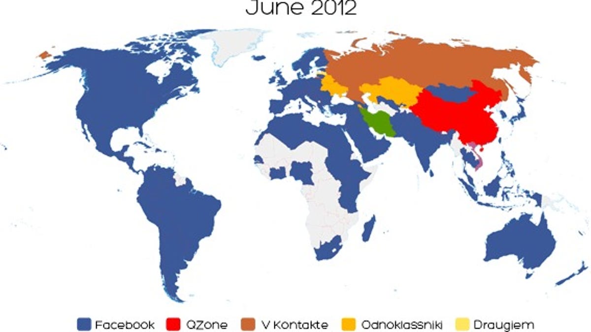 V Kontakte and Odnoklassniki are keeping Facebook at bay in countries of the former Soviet Union, and QZone, Tencent Weibo and e Sina Weibo dominate China's social networkers. Cloob, the Persian-language social networking site is dominant in Iran. In the last year, according to Cosenza's calculations, Facebook has brought Brazil into the fold (see the map below), with an estimated 20 percent to 30 percent penetration rate of Internet users in the country.