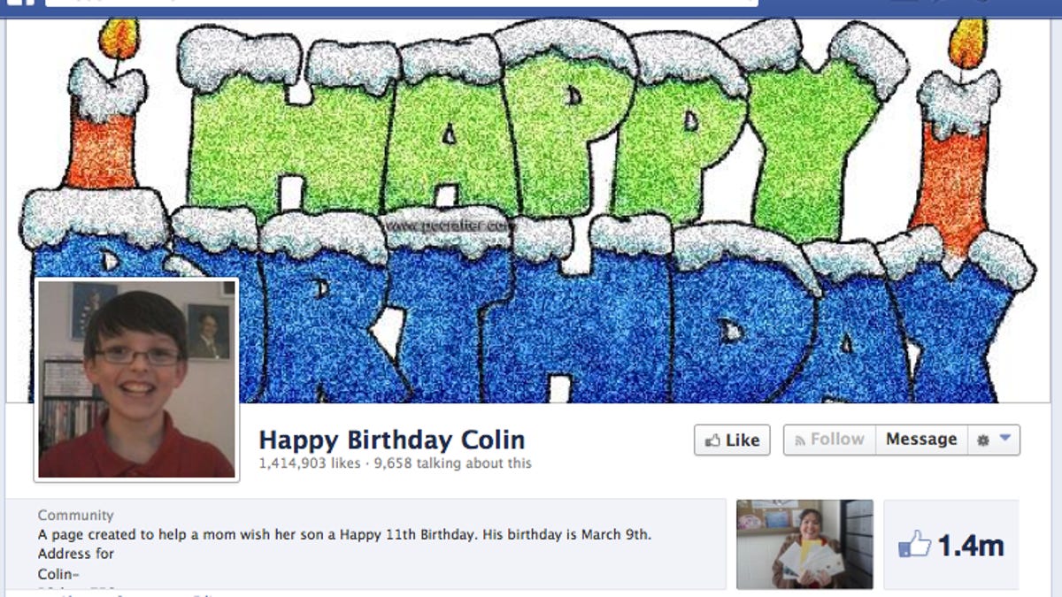 When Colin's mother, Jennifer Cunningham, asked him if he wanted a birthday party, he responded that there wasn't any point because he didn't have friends. That's when she decided to surprise him by creating a "Happy Birthday Colin" Facebook page.