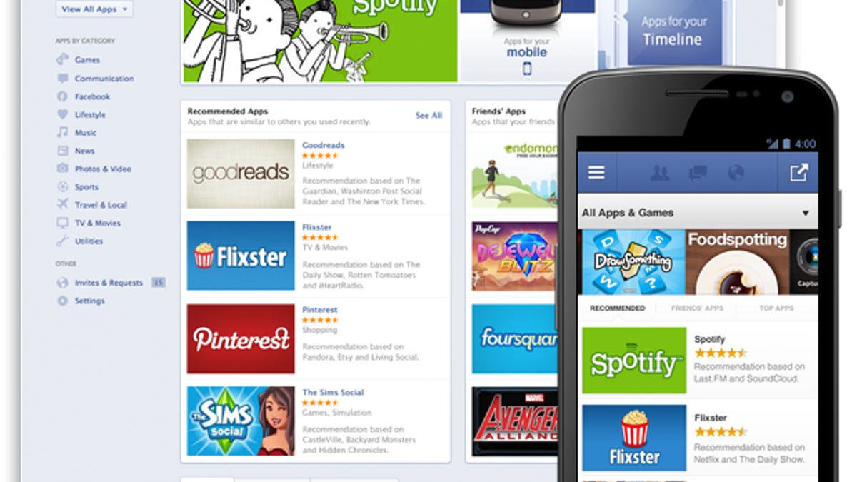 Today's announcement was what Facebook spokeswoman Malorie Lucich described as a call to developers to submit images and copy so that their Facebook can consider featuring their apps. She said Facebook's App Center is designed to push the best social apps through a personalized discovery page.