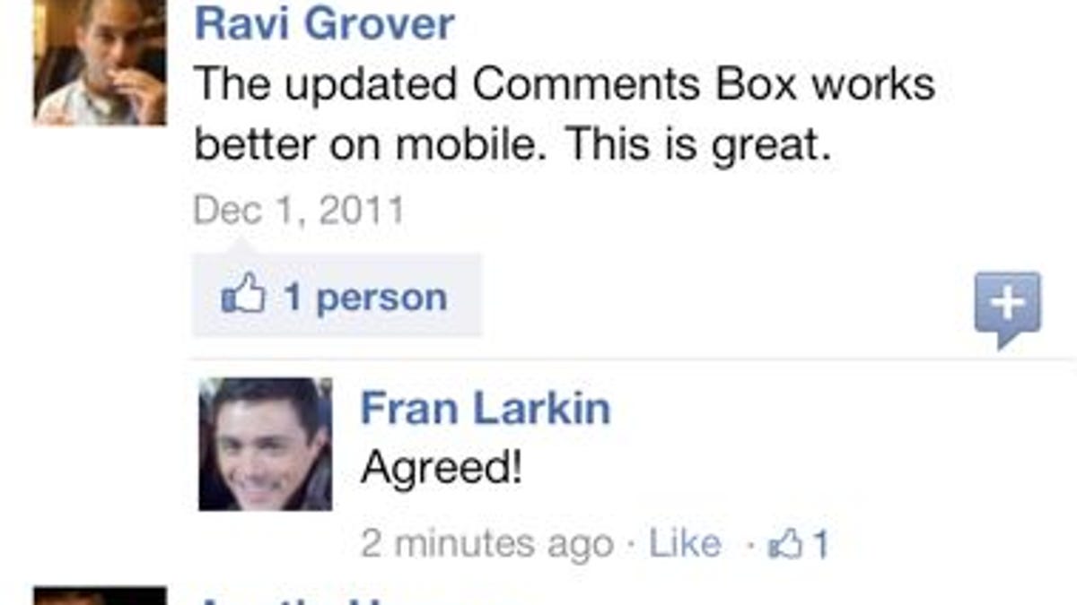 The updated plug-in will automatically appear on the mobile versions of sites that have Facebook's Comment Box enabled. The mobile version automatically appears when the plug-in recognizes a mobile device and will ignore the width perimeter to allow comments to be displayed at 100 percent.