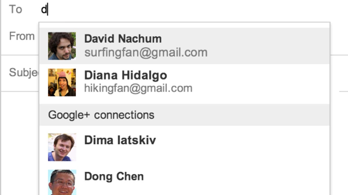 The messaging option, which Gmail product manager David Nachum said will be rolling out to all Gmail users over the next few days, shares user names from Google+ in your Gmail contacts list, but not Gmail addresses. Those are only shared once the recipient has responded to your e-mail. The screenshot above shows how Gmail differentiates between Gmail contacts and Google+ contacts.