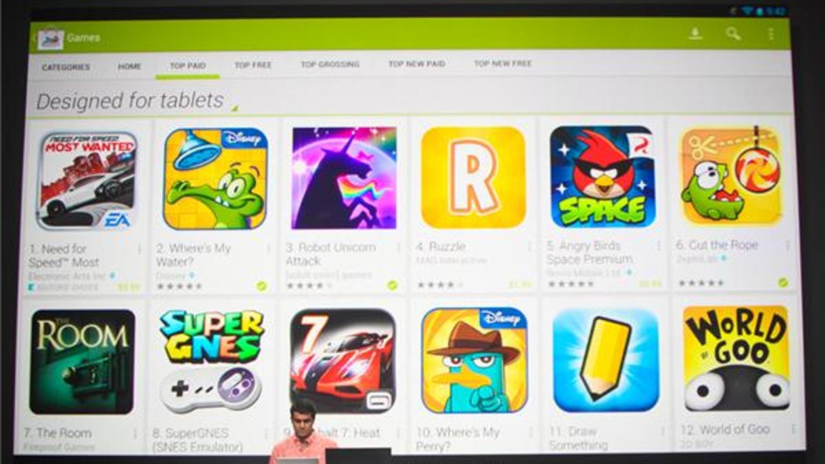 Google Play's recommendations -- some of which are based on a user's Google+ account -- will now surface apps designed for tablets in its top app charts, Google announced at its Google I/O developer's conference.