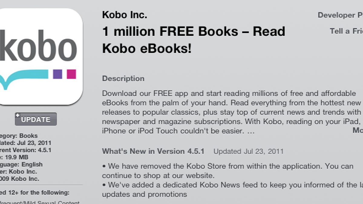 When it comes to iOS apps, "Apple's in full control," Kobo's Chief Technology Officer Dan Leibu told CNET in an interview this morning. "It sets the rules unilaterally. And it could change them down the road. So the future is a little bit uncertain there. This gives our users one more option."