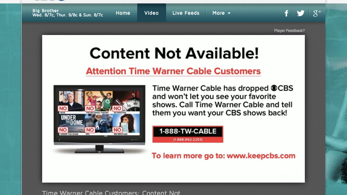 That's how the story unfolded once again on Friday night between broadcaster CBS -- the parent company of CNET -- and distributor Time Warner Cable. However, this time around, technology has changed the script. Online options like over-the-air streamer Aereo and Amazon's Prime Instant Video are giving consumers more options in the blackout, which both CBS and Time Warner are both trying turn into weapons to advance their cause.