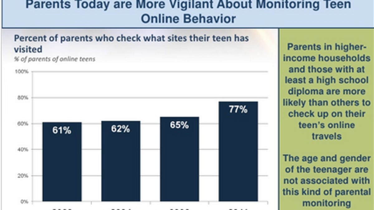 The percentage of parents monitoring which sites their teens have visited has increased by 16 percent within 11 years.