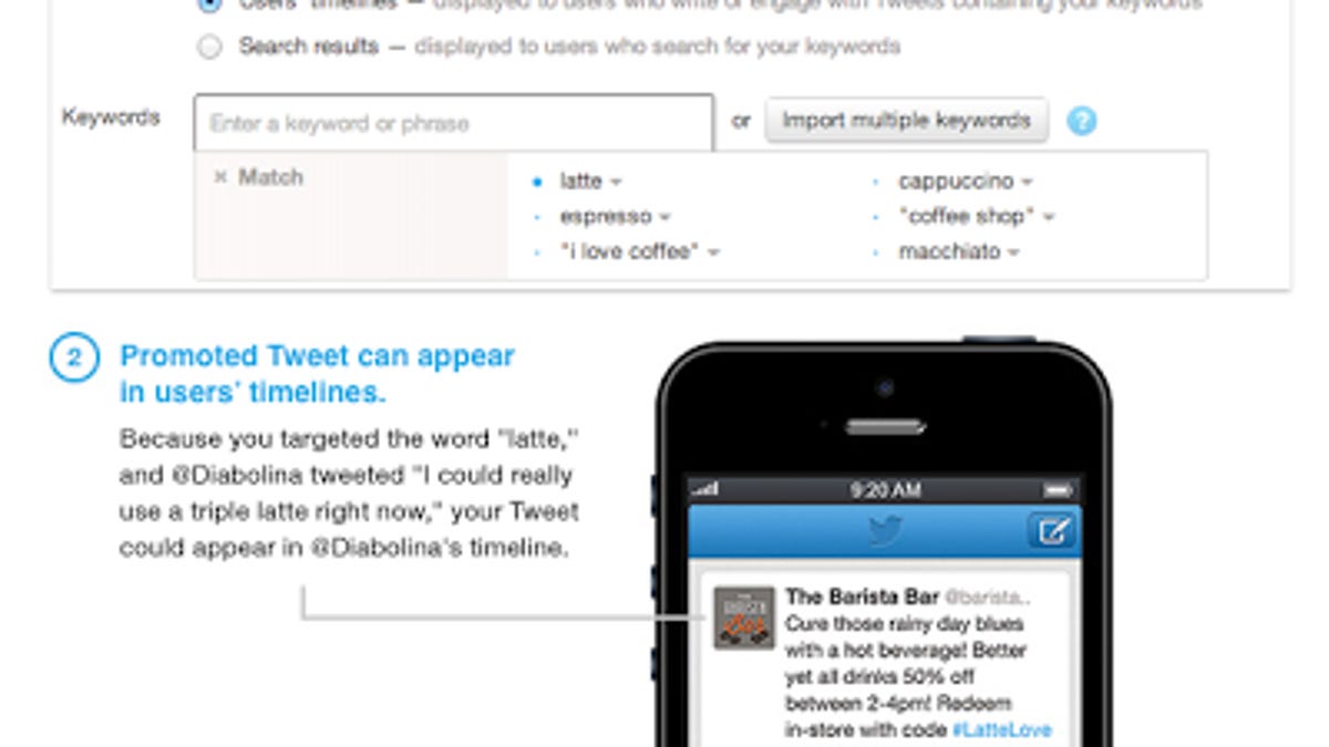 In its post, Twitter said a good example of how this new system would work could be when a user tweets about the latest album from a favorite band. If that band happened to be playing a concert nearby, the venue could "run a geotargeted campaign using keywords for that band with a tweet containing a link to buy the tickets." Then, the user would likely see a promoted tweet pop up in their timeline alerting them to the concert and the availability of tickets.