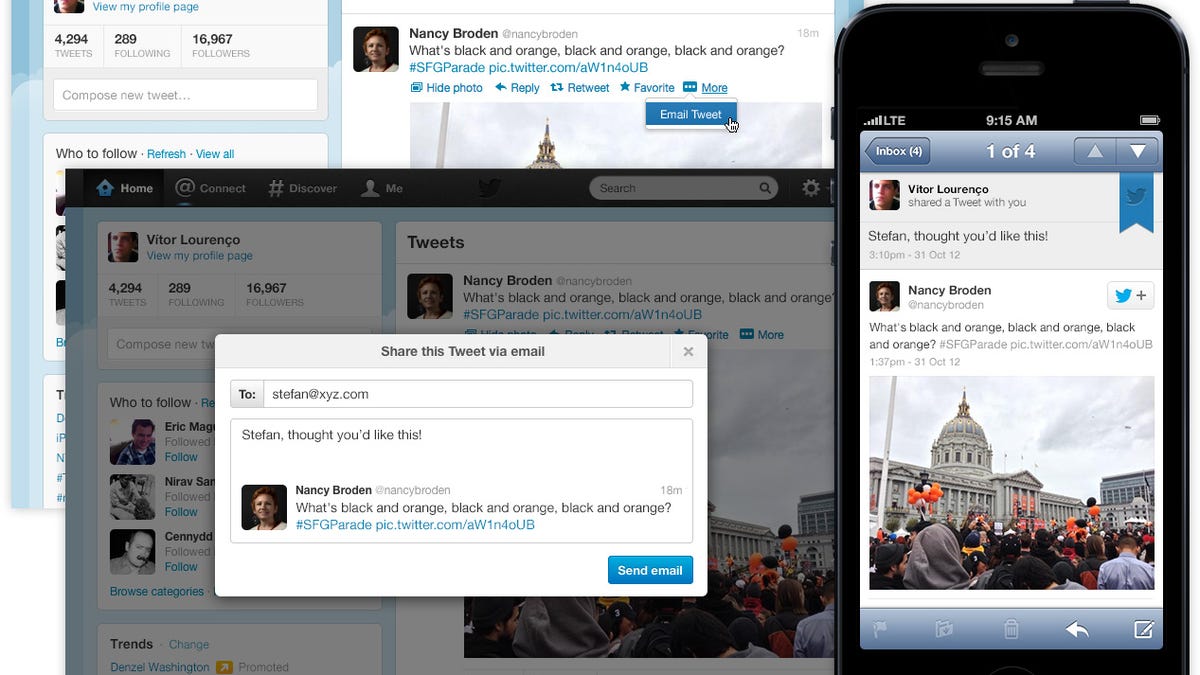 Twitter is finally adding the ability to e-mail tweets directly from the Twitter stream, a feature that's already well-established in third-party Twitter apps.