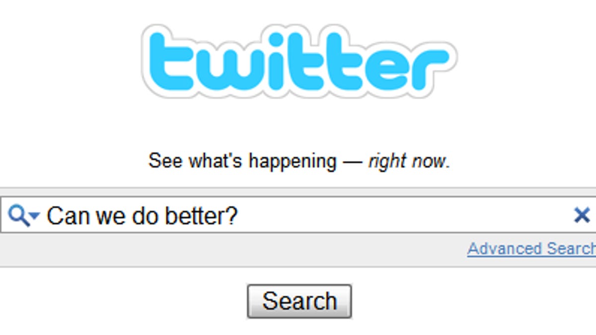 The downside to Twitter search is that it's dumb, at least for now. Results are only sorted chronologically. There's no algorithm to give you the most read, most authoritative, most linked-to, or most re-tweeted items. And it only searches Twitter.