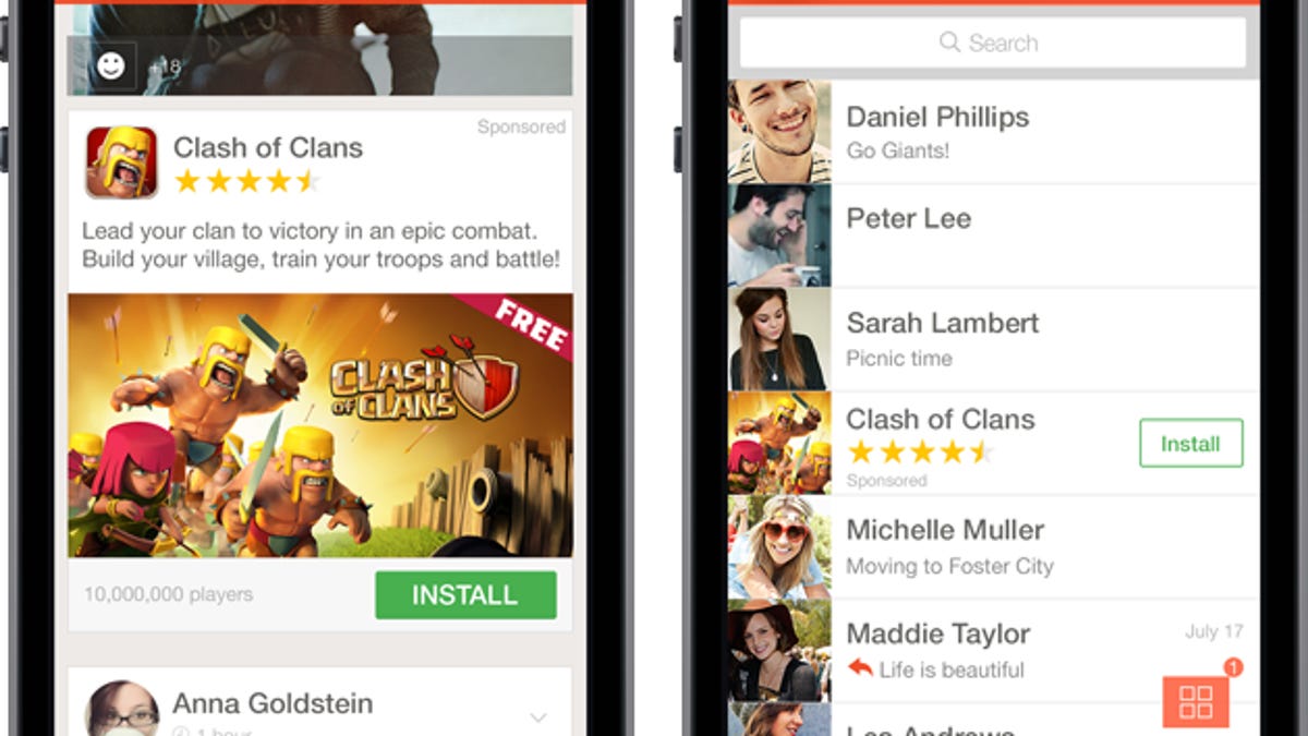 In a photo (see above), MoPub showed how Tango had been able to automatically insert ads both into a news feed and into a chat tab.