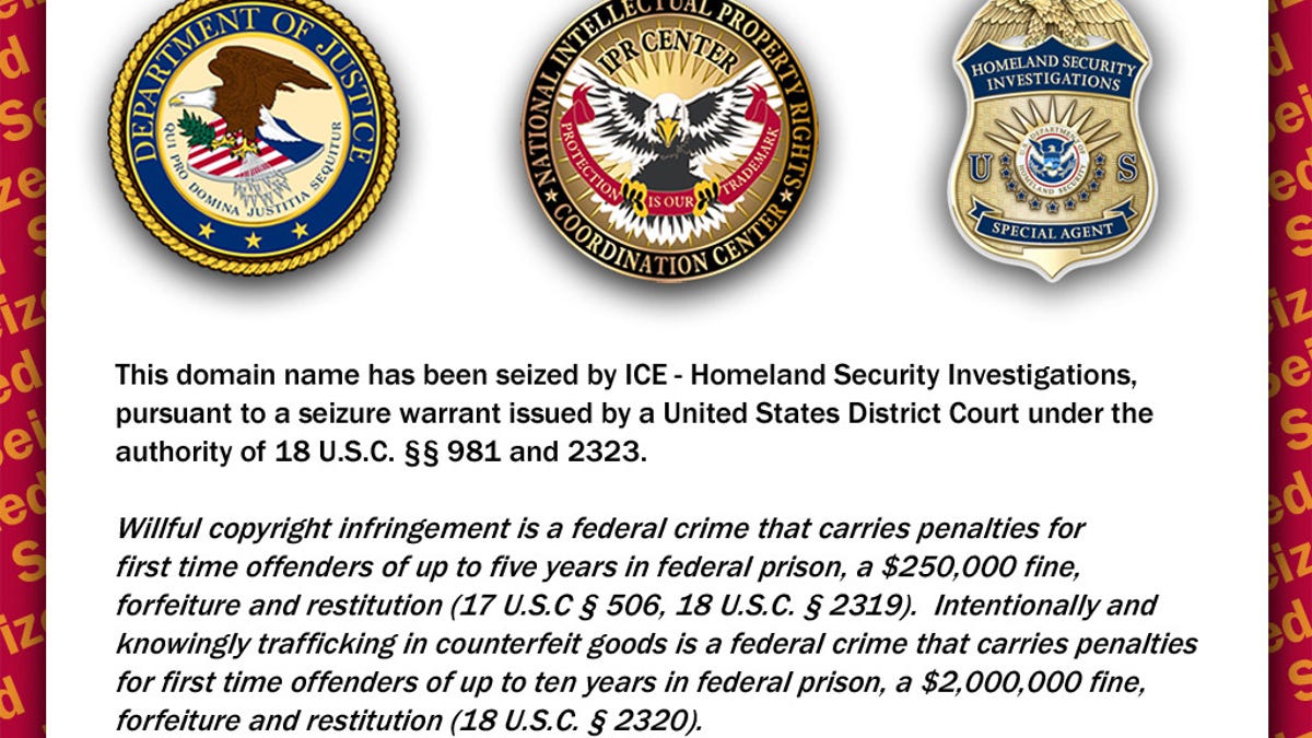 The domains of torrent sites that link to illegal copies of music and movie files and sites that sell counterfeit goods were seized this week by the Immigration and Customs Enforcement division of the Department of Homeland Security. Visitors to such sites as Torrent-finder.com, 2009jerseys.com, and Dvdcollects.com found that their usual sites had been replaced by a message that said, "This domain name has been seized by ICE--Homeland Security Investigations, pursuant to a seizure warrant issued by a United States District Court."