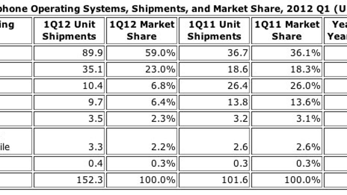 Microsoft's Windows Phone was one of the more surprising winners last quarter, as shipments jumped 26.9 percent to 3.3 million units. However, the platform could only tally 2.2 percent market share. What's worse, IDC doesn't expect to see too much growth in that figure in the coming quarters.