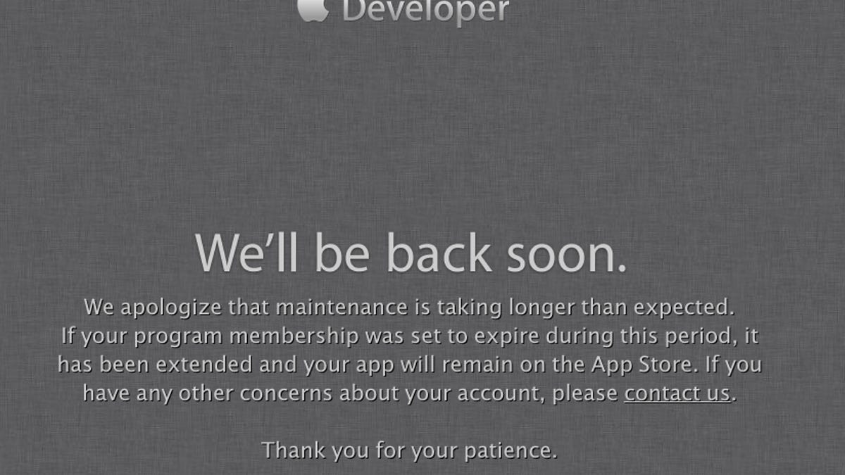 In a note to developers, the company said that an "intruder" tried to gain access to developer information, prompting the company to take the service down. Sensitive information on that site was encrypted, Apple said, however it's keeping the site down while security is being hardened. No estimate was provided for when it will be back up.