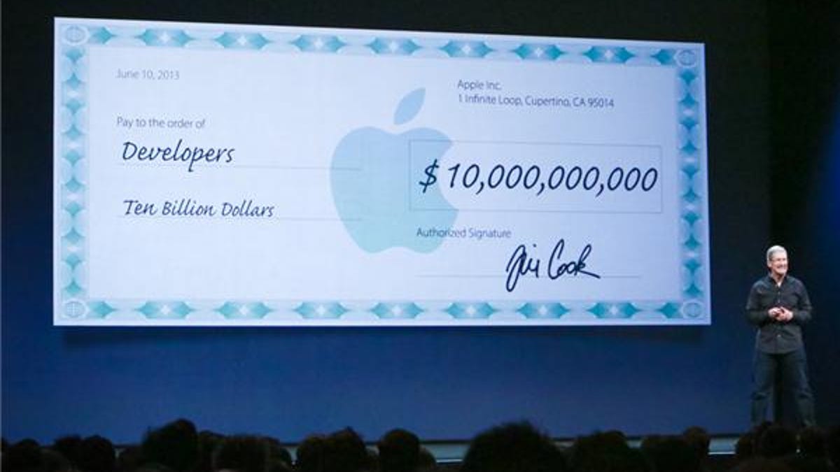 That's three times more than Android and other mobile stores have distributed to app makers, Cook said during his keynote speech at Apple's annual developers conference. And $5 billion of the total was just from this year, he said.