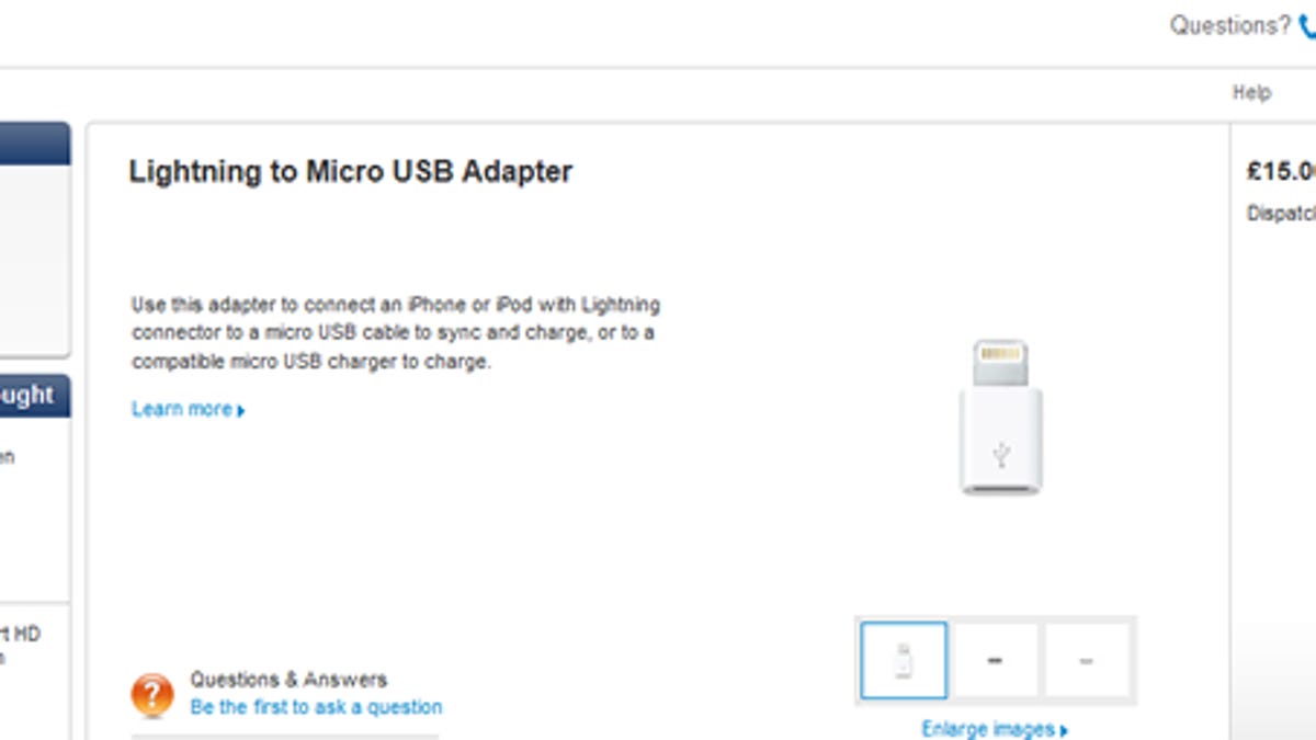 The Lightning to Micro-USB adapter offers a handy alternative to people who already have a stock of Micro-USB cables, thereby eliminating the need to shell out money for additional accessories. The adapter will sell for 15 pounds ($24) and ship within three days.