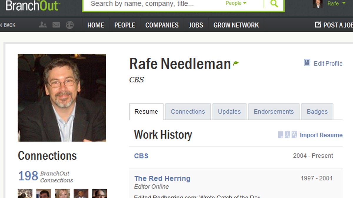 If you'd like to grab your branchout name, the company has made an early reservation system available to the first 500 people who e-mail cnet@branchout.com. Send a note there and they'll send you back instructions to claim your URL, presumably something nice you can put on your resume, like branchout.com/JoeBob