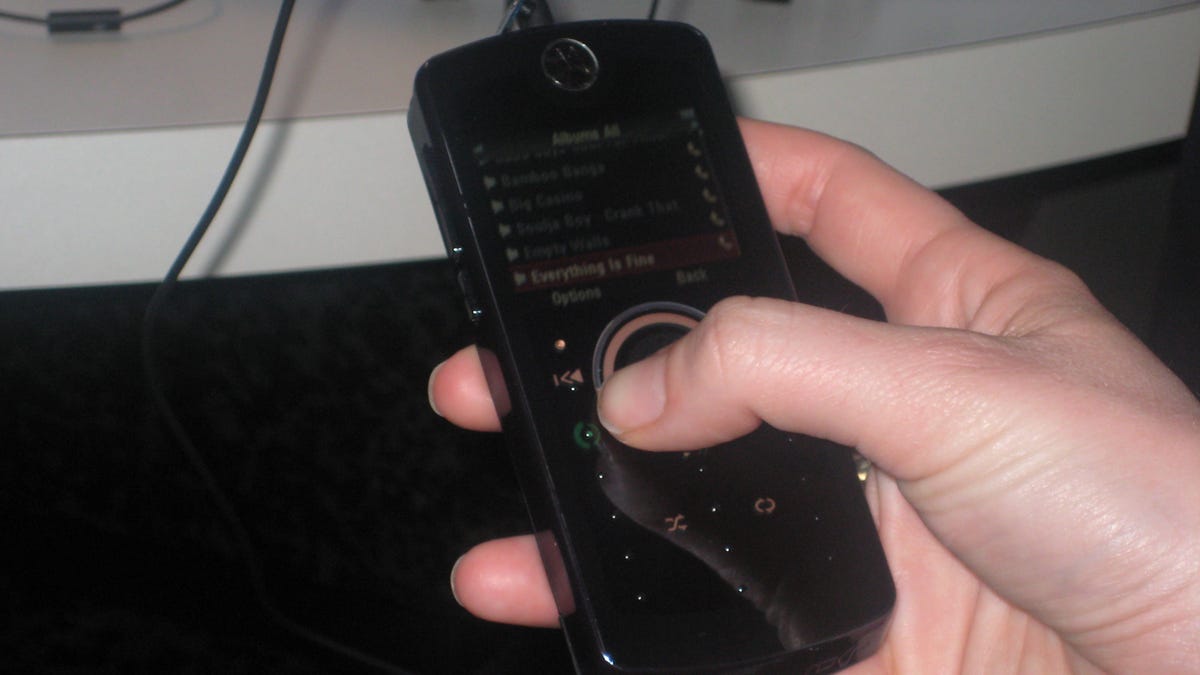 The Rokr's showpiece is, of course, its new keypad. I admit I didn't know quite what to expect, as new cell phone interfaces can be hard to do right. But it was quite easy to use from what I could tell. The vibrating keypad was nifty, and the numeric keys also have tiny bumps to help you find your way. The scrolling toggle doesn't go in a full circle (perhaps Apple has patent on that) so you could move your finger in a full loop. If you tried to trace your digit on the missing portion of the circle at the toggle's bottom, the cursor on the screen would stop and then resume again when you got to the other side. The keypad morphing also worked well. When I pressed the dedicated music button, the backlighting illuminated only the music buttons, just as the E8 is supposed to do. Same goes for the camera; once we selected that feature, only the camera buttons were backlit. Though the transition between the individual functions took a few seconds but that wasn't an issue for me. The new menu interface was simple and attractive, and I liked the position of the 3.5mm headset jack on the top of the phone.