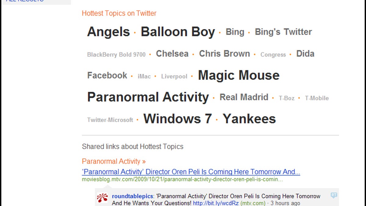 None of what Bing does with Twitter is startlingly new. Twitter's own search gives great real-time Twitter results. Other engines like Twazzup and Scoopler combine relevancy rankings into their results. And OneRiot does a very good job with shared links. But it is good to see real-time content start to bleed into mainstream search. It could be useful and relevant for everyone.