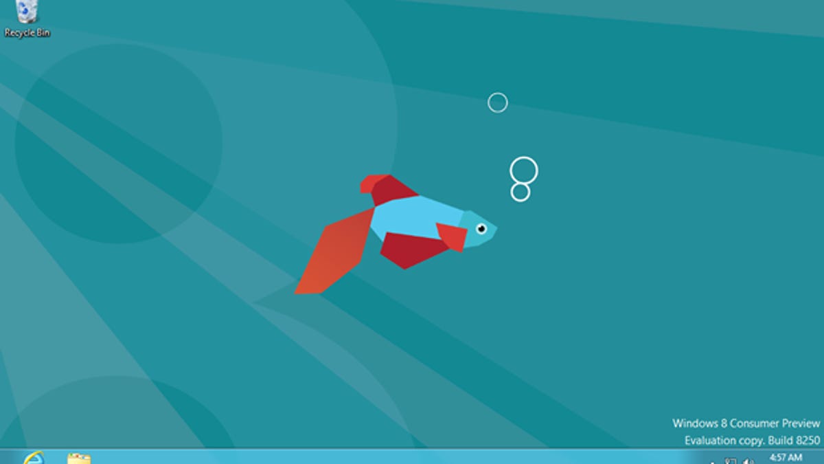 Accessing your desktop from the Metro Start screen is just a simple matter of clicking the tile for desktop. You'll then see the familiar interface with just the Recycle Bin on the desktop itself and icons for Internet Explorer and Windows Explorer on the taskbar.