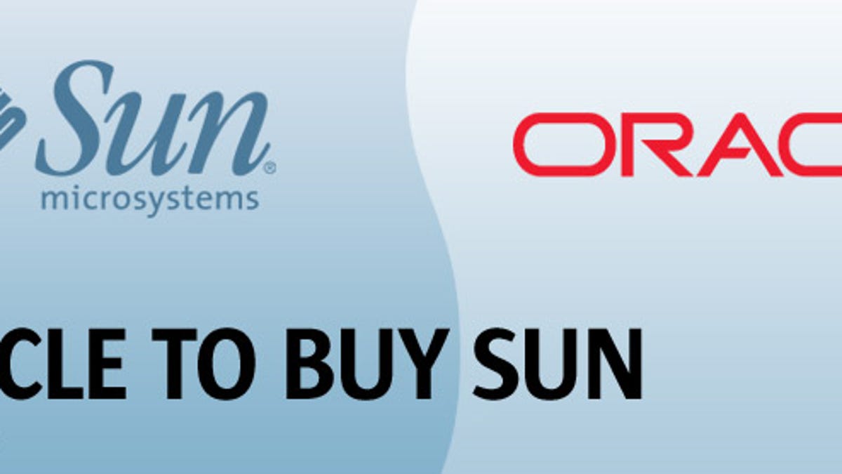 Historical footnote, 6:35 a.m. PDT: Ellison didn't always see Sun as a desirable takeover target. In 2003, when Oracle was in the throes of trying to acquire PeopleSoft, Ellison said that buying Sun would be a "bad idea." At Oracle's annual shareholder meeting that October, Ellison said: "I don't think Oracle should be in the hardware business, so I don't think you'll see us buying any hardware companies."