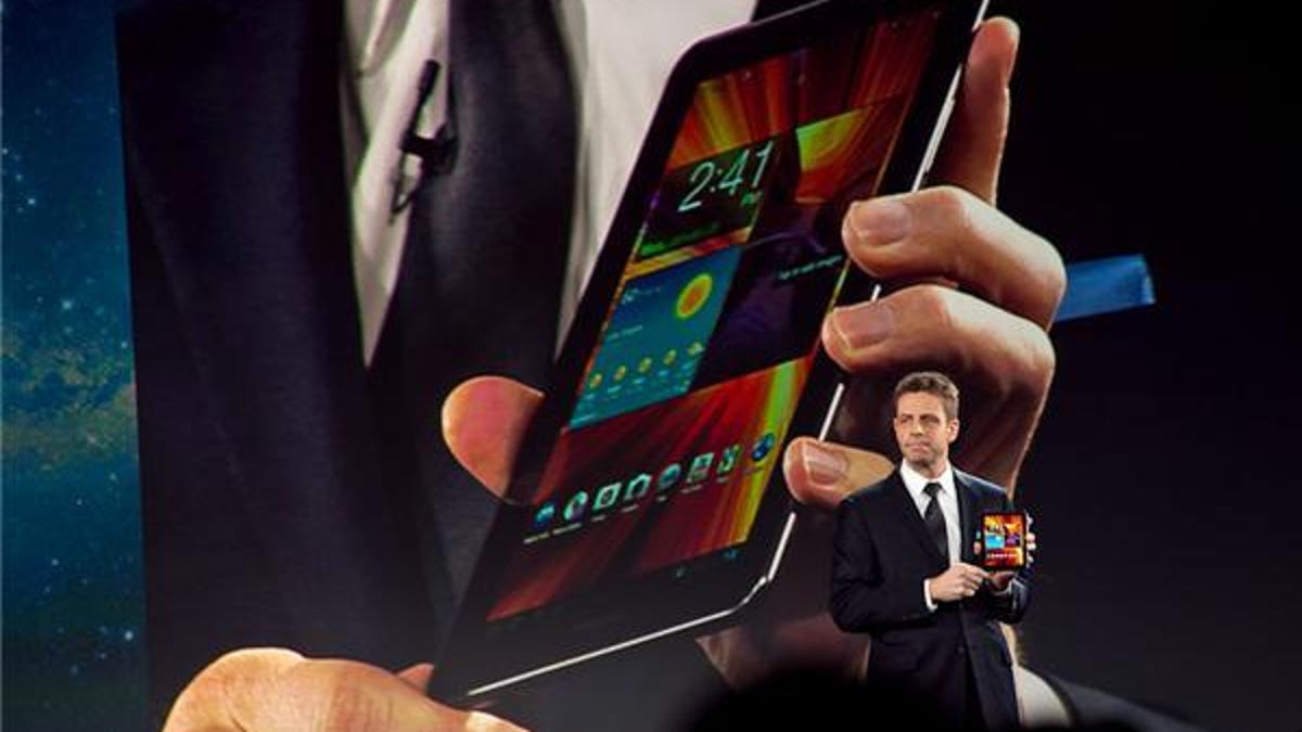 Next up, also as many expected, Samsung unveiled its "ultimate TV," a 55-inch "super" OLED TV. And it went on to showcase new mobile devices, including the Samsung Galaxy Note on AT&T, Galaxy Tab 7.7 on Verizon, and a second-generation Series 9 notebook.