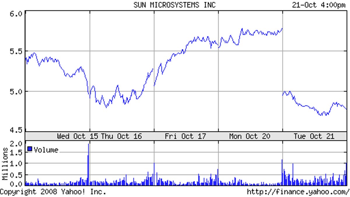 But Sun wasn't the only tech stock bleeding red, as evidenced by the declines in the broader markets.