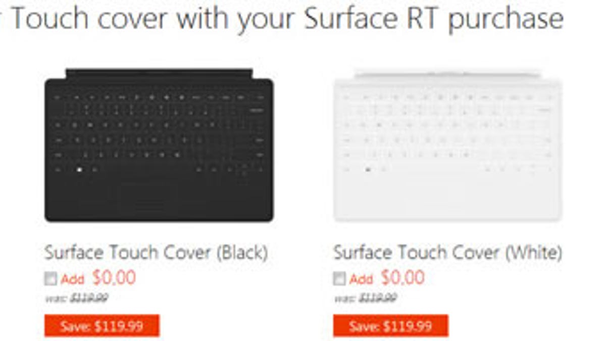 For a limited time starting May 31, Microsoft will throw in a free Touch Cover, Touch Cover Limited Edition, or Type Cover to folks in the U.S. and Canada who buy a Surface RT tablet. Adding a Touch Cover to the purchase normally brings the overall price up by $100, while the cover itself costs $119 separately. The Touch Cover Limited Edition and Type Cover each costs $129 on their own.