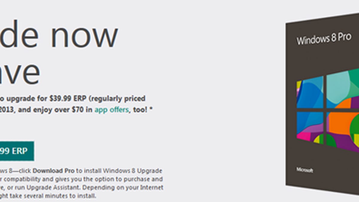 The Windows 8 Pro upgrade is still available for $39.99 for Windows 7, Vista, and XP users. Even further, Windows 7 users who bought their PC after June 2 of 2012 can grab Windows 8 Pro for just $14.99.