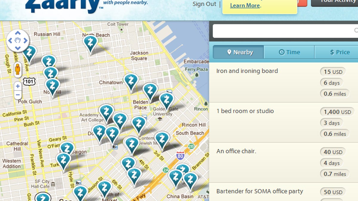 A business designed to get random people to pick up a sandwich for people they don't know? That would indeed be the stupidest thing I've ever heard. Zaarly, thank goodness, is not that. Instead, it's an update on eBay and Craigslist, a person-to-person marketplace that can become a platform for small businesses, brought up to date with location awareness, social-network chops, and an adjustment of the bazaar marketplace that could make it easier than it's ever been for buyers to find the things they want.